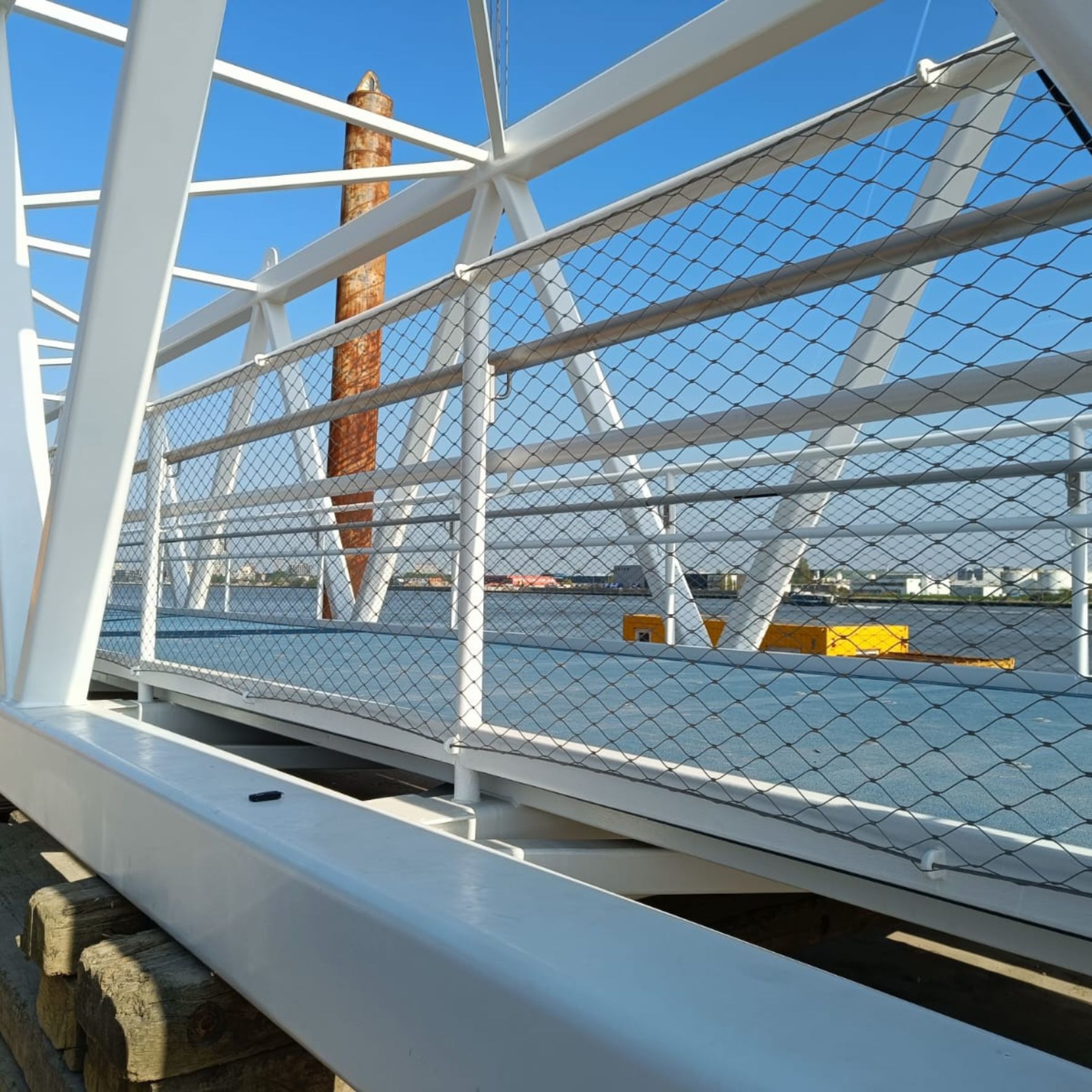 De netten worden vervaardigd uit kabels en busjes/klemmen van RVS 316. Dit is een hoogwaardige staalsoort die bestand is tegen corrosie, temperatuurschommelingen en slijtage.